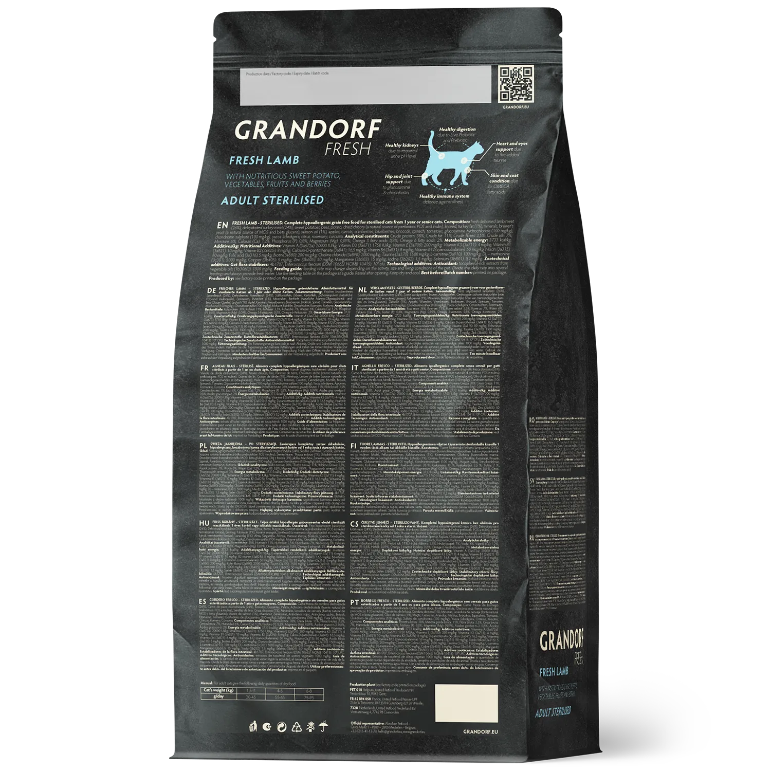 Grain-free food with live probiotics.For adult sterilized or elderly cats.