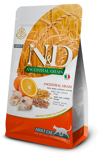 Complete and balanced dry food for cats of all life stages, formulated with wild cod and ancestral grains to support vitality, digestion and overall health.