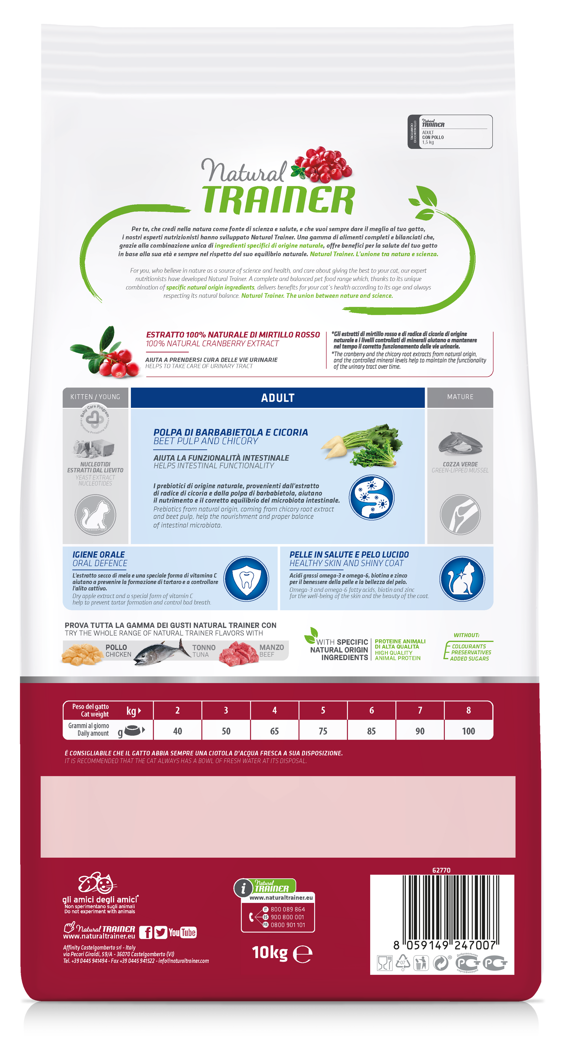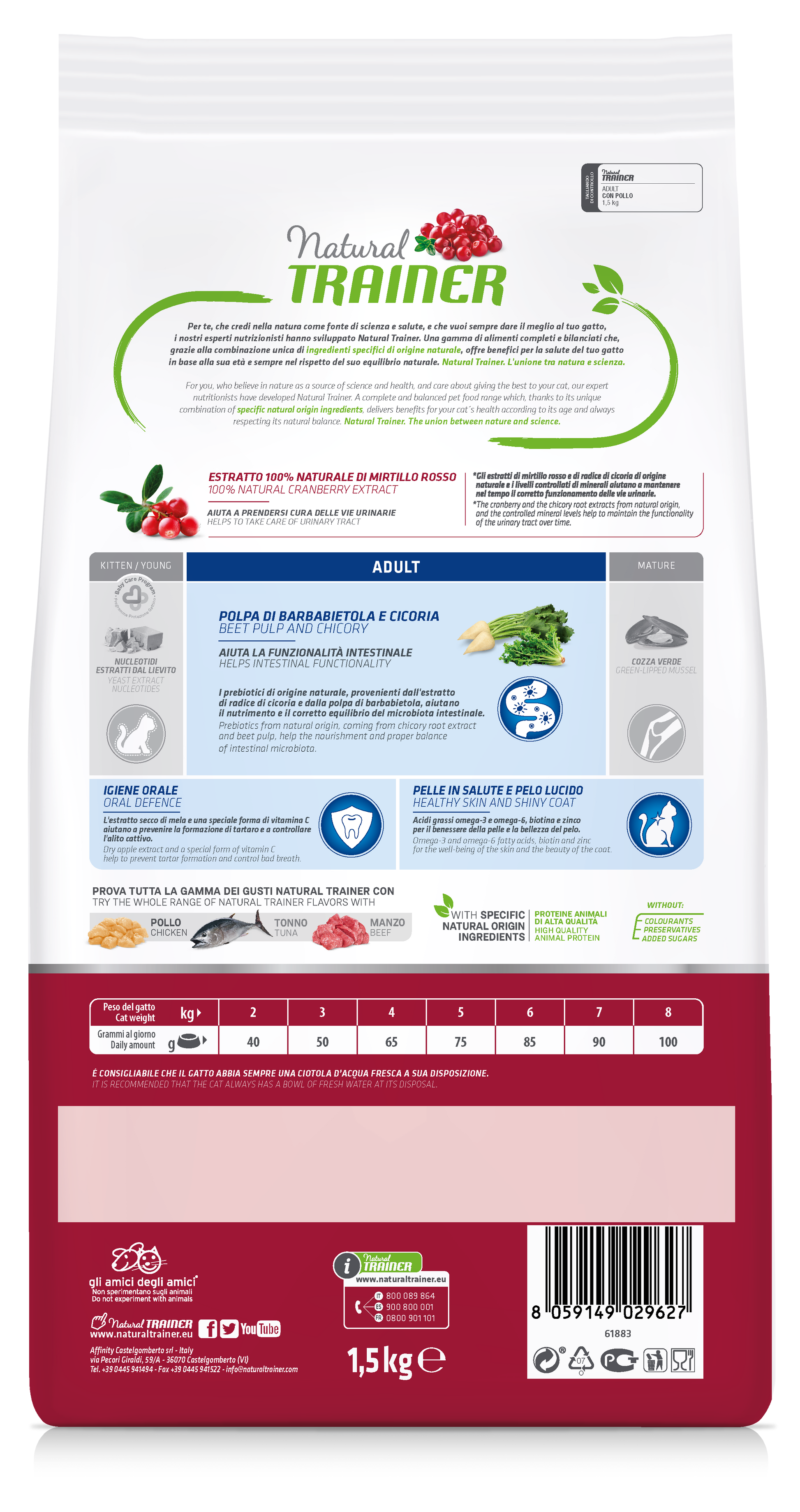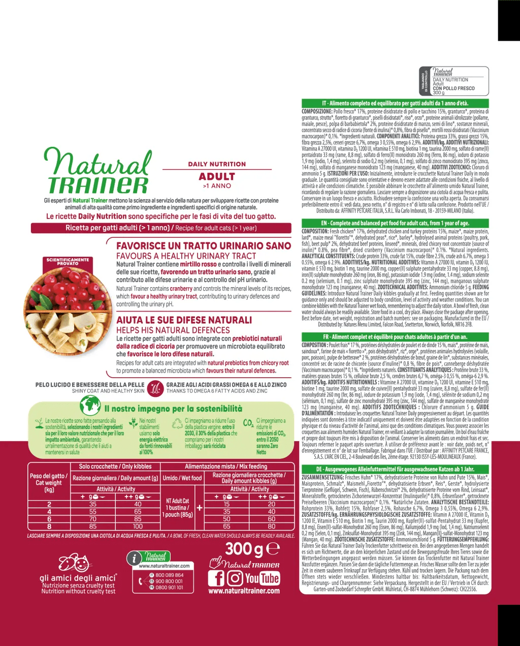 Daily Nutrition Adult With Fresh Chicken is a complete and balanced dry food formulated to meet the daily nutritional needs of adult cats from 1 year of age. Developed by Natural Trainer experts, this recipe combines high-quality animal proteins with carefully selected natural ingredients.