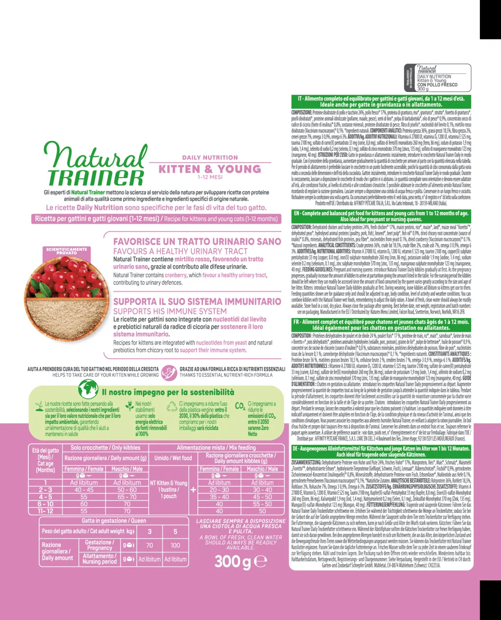 Daily Nutrition Kitten & Young With Fresh Chicken is formulated for kittens and young cats from 1 to 12 months and for pregnant or nursing queens. It provides all essential nutrients for healthy growth and development.