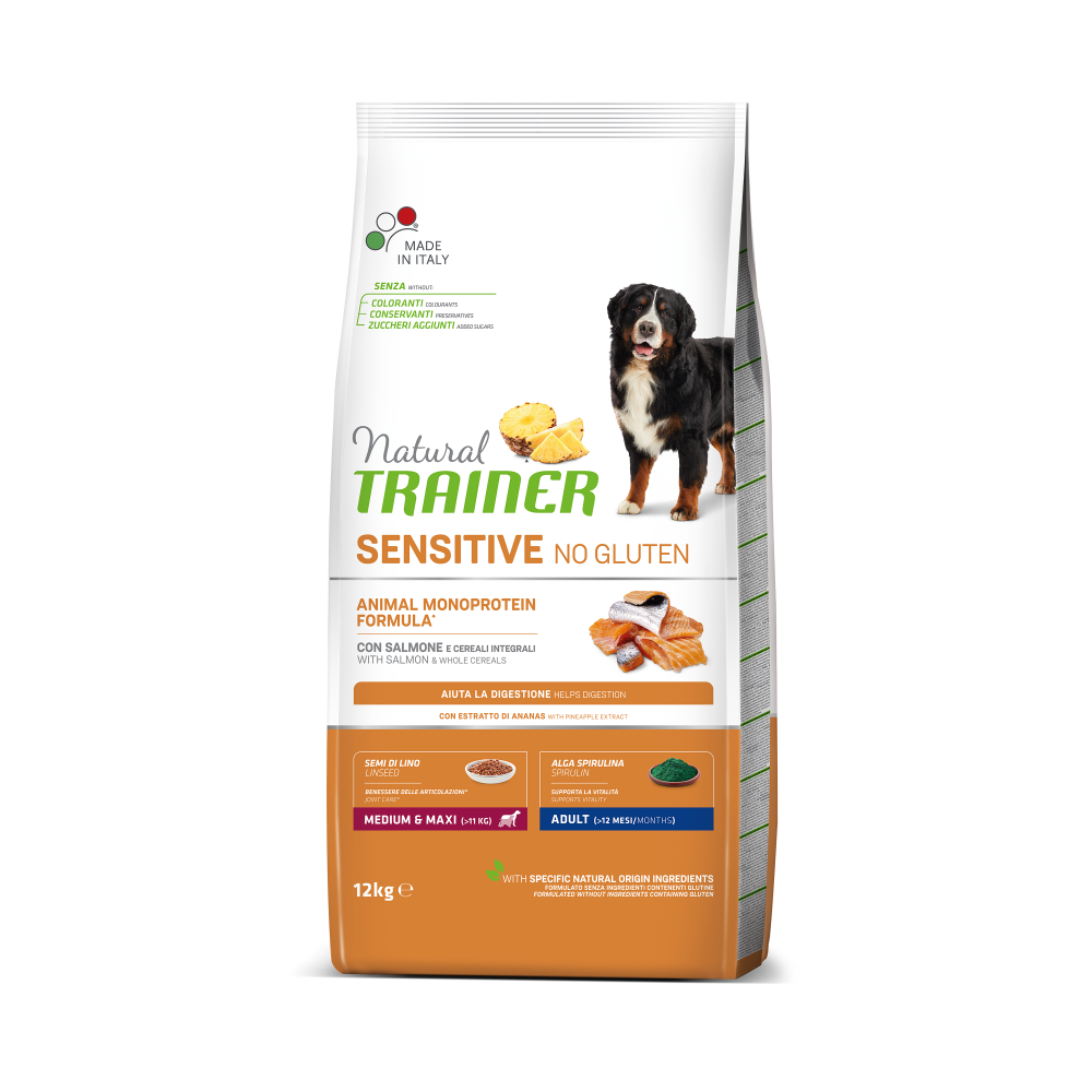 Specialty Nutrition Sensitive Monoprotein Adult Salmon is a complete dry food for medium & maxi-sized adult dogs over 1 year old. Its recipe is based on a single high-quality animal protein (salmon) and includes whole cereals with natural prebiotics from chicory root to support digestion.
