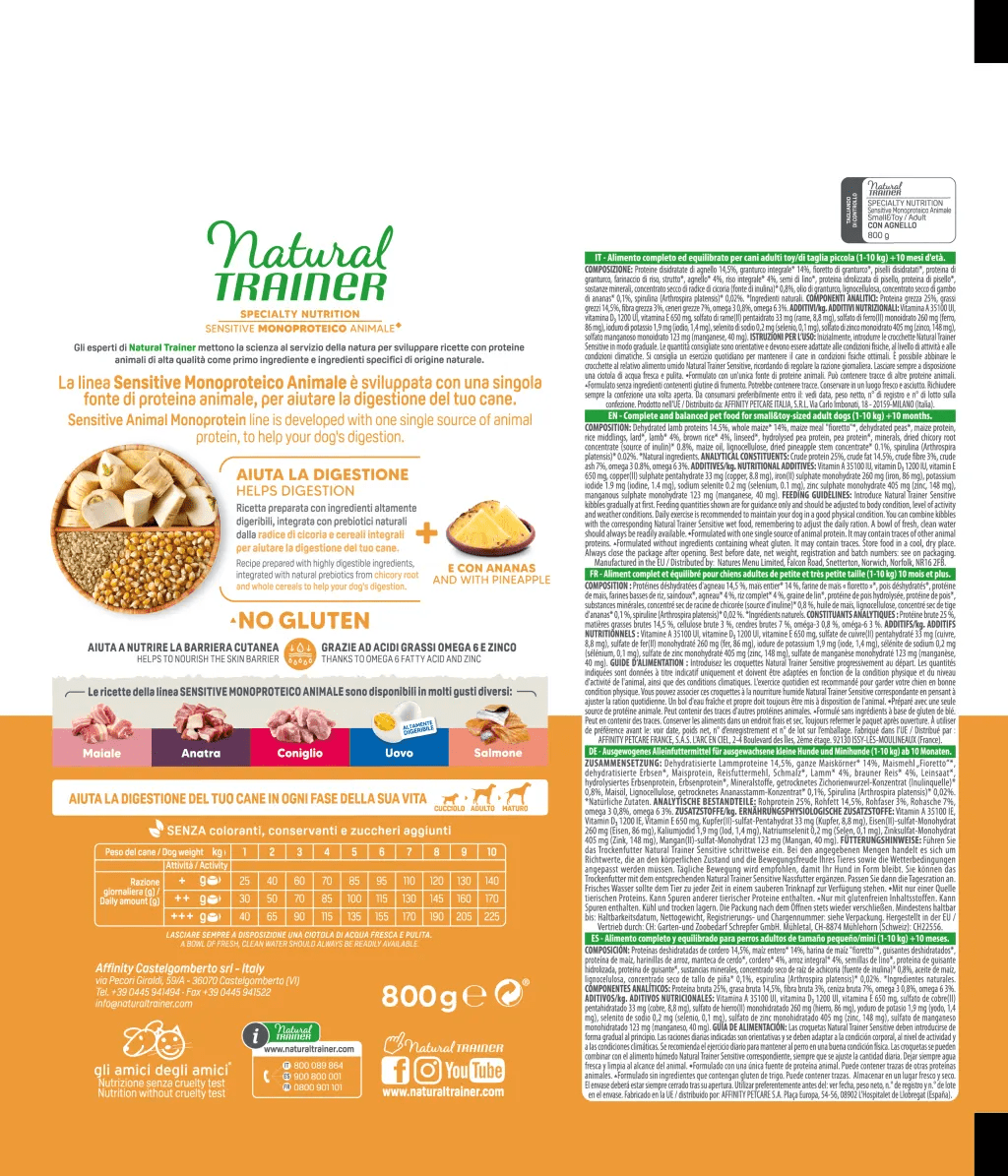 - Animal Monoprotein: Single animal protein source (lamb) for sensitive adult dogs.